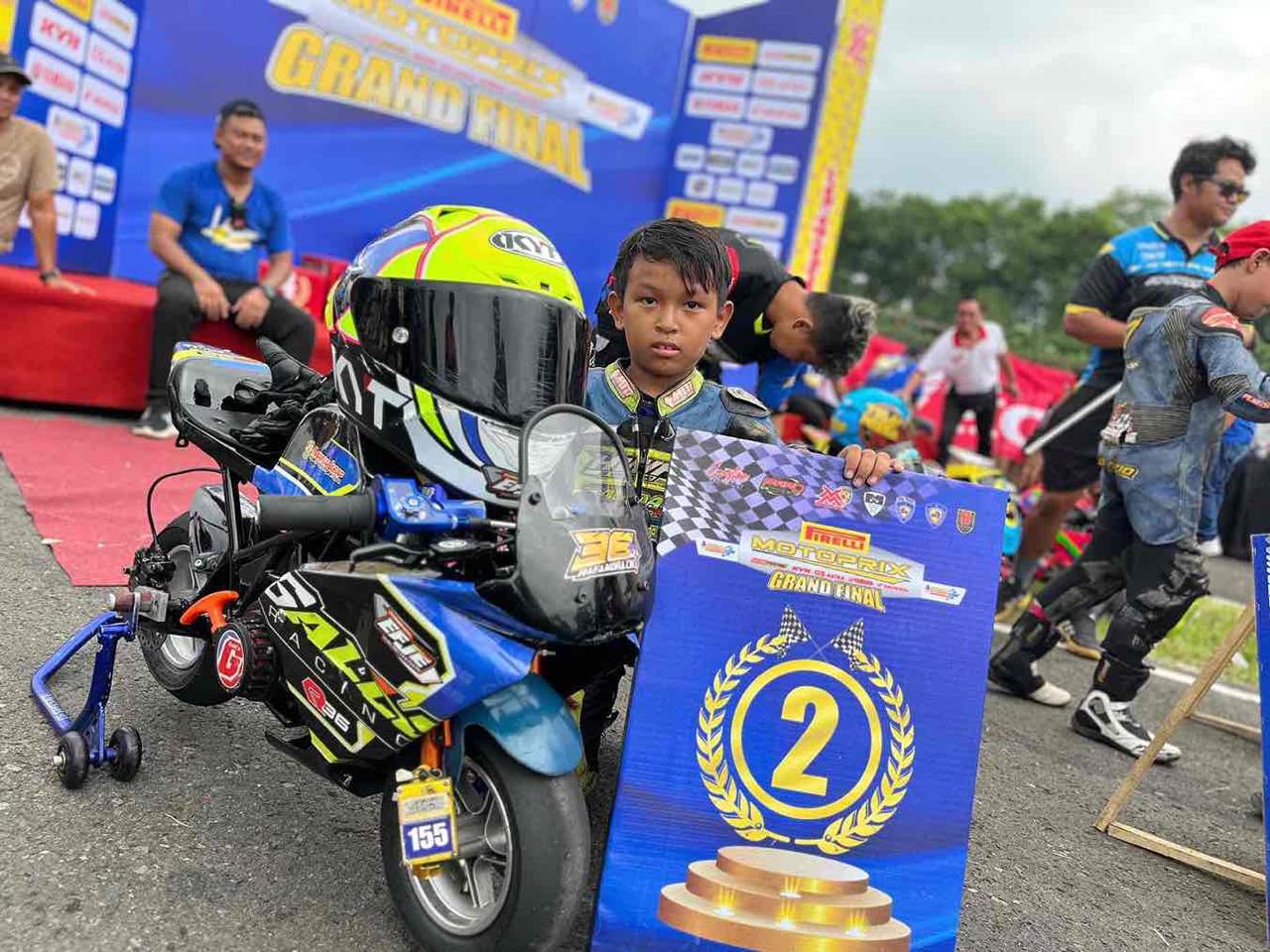 Rafandra podium ke 2 Pocket Bike usia 8-9 tahun di Grand Final Motoprix 2025 Semarang.