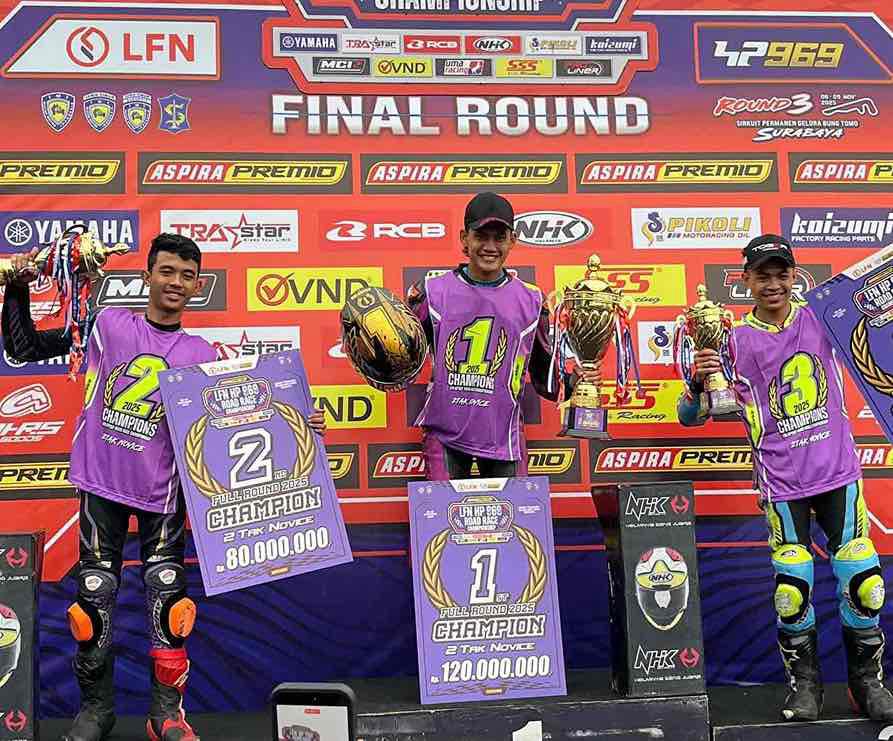 Bersama rider muda Azzara, tim yang fokus bertarung di kategori Bebek 2Tak Novice ini tampil konsisten sepanjang musim dan berhasil mengamankan posisi juara umum ke-2. Hasil yang cukup membanggakan untuk debut perdana mereka di musim 2025.