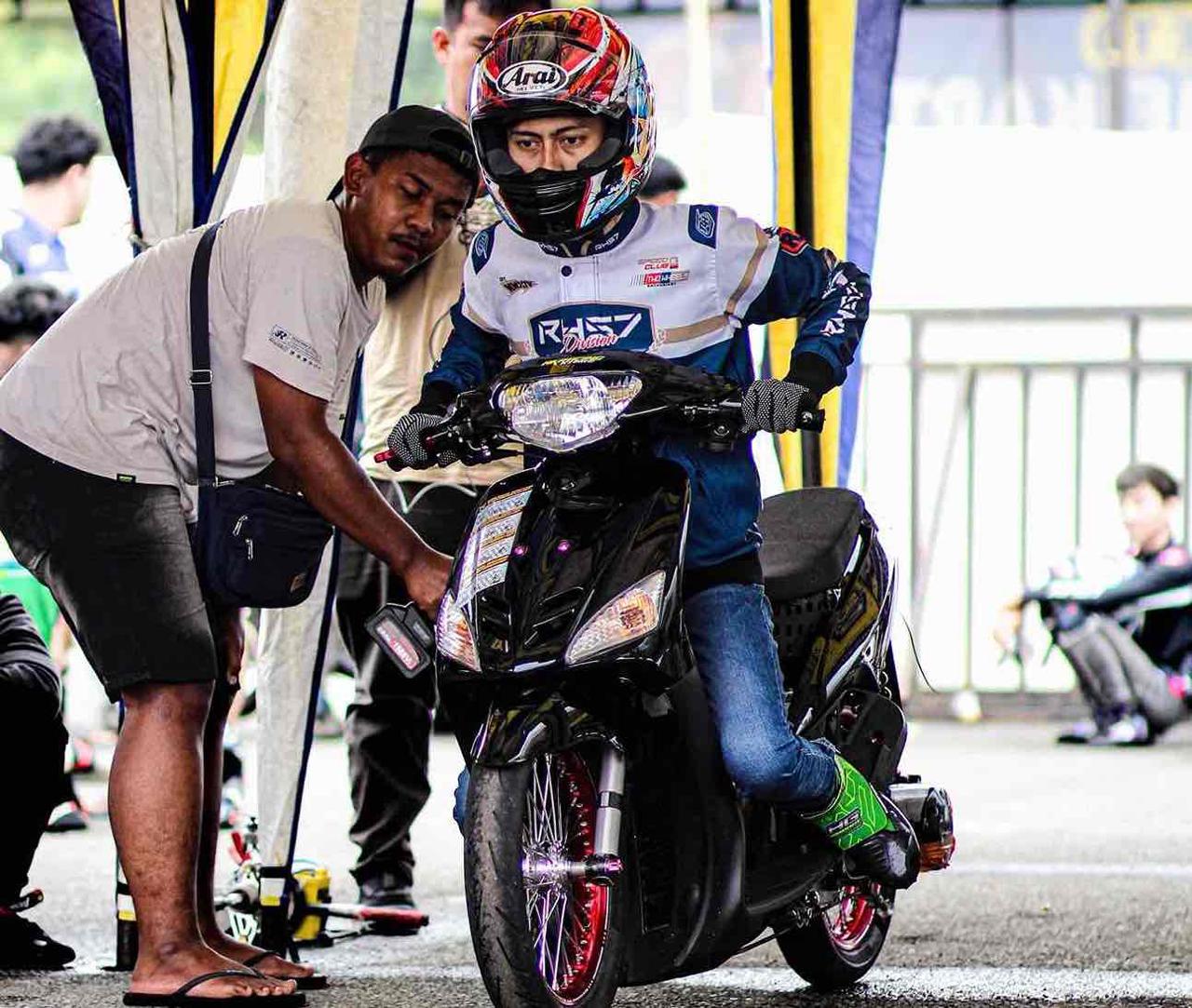 Motor Mio berkelir hitam yang merupakan racikan AK Racing di bawah komando mekanik Agung tersebut tampil impresif sejak sesi awal hingga babak final di kelas Matic Sunmory 200cc.