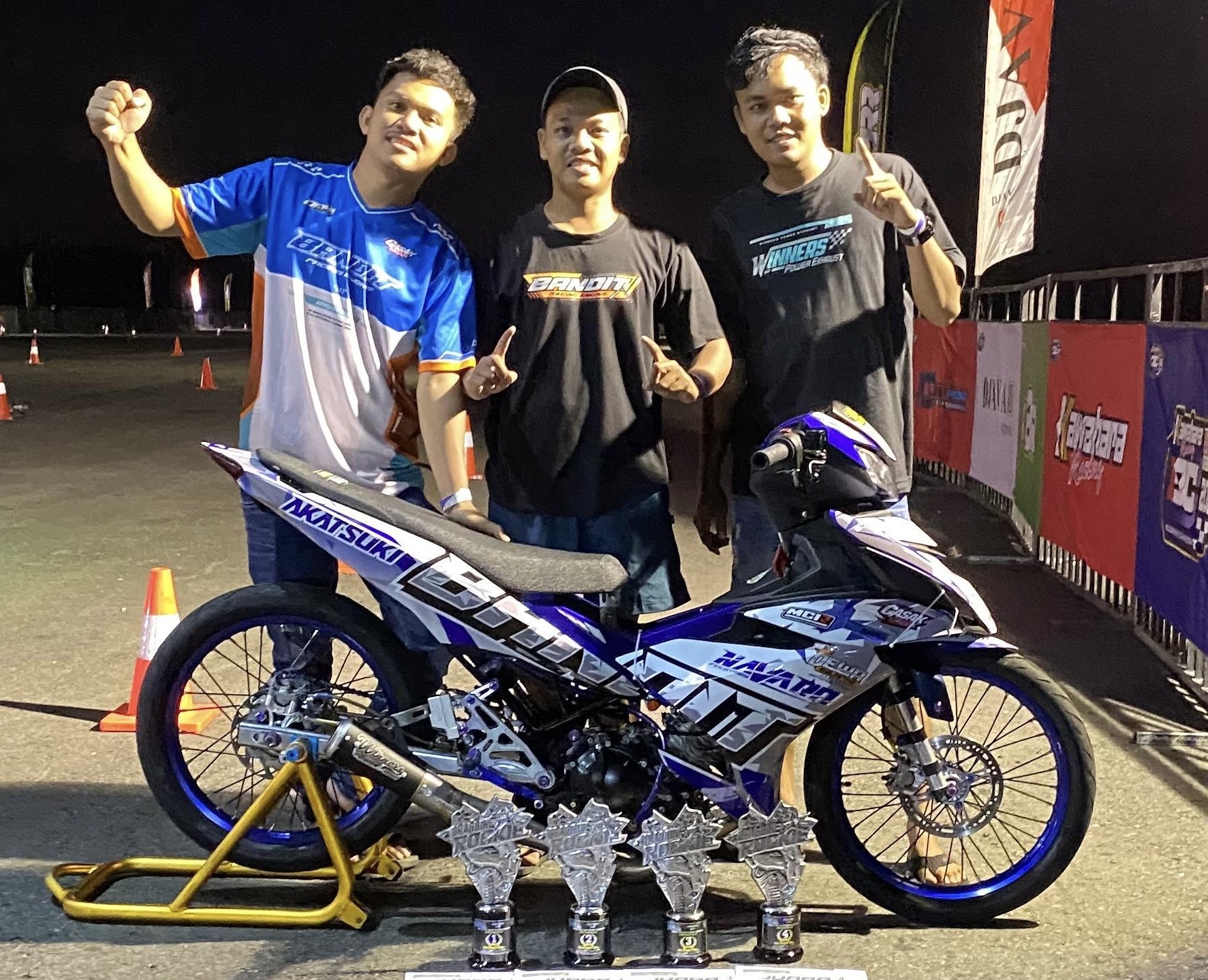 Catatan waktu tersebut menjadi best time di kategori MX King Prostreet 200cc. Tak hanya Kiki Paiko, tiga pembalap lain yang juga menunggangi motor Bandit Dewa Blasting x Winners Exhaust turut memperkuat dominasi dengan hasil luar biasa: