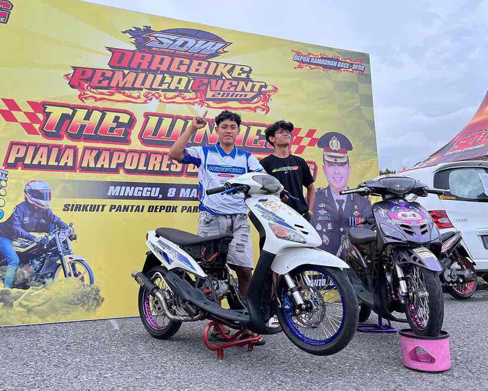 Tak hanya mendominasi dan meraih podium terbaik namun Motor mio berkelir putih andan tim ini tampil impresif dengan mencatatkan waktu fantastis 7,6 detik (best time nasional) regulasi 2026, lewat pembalap Adam Anfaris pada ajang Super Drag Way (SDW), pemula yang berlangsung di Sirkuit NP. Landasan Pacu, Pantai Depok.