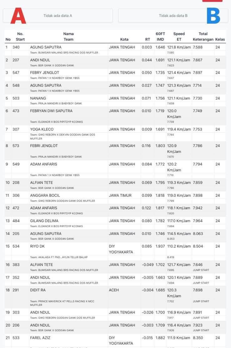 Sementara Andi Ndul juga berhasil menyumbangkan podium kedua. Raihan ini semakin menegaskan bahwa BRS Racing Solo masih menjadi salah satu kekuatan dominan di kelas FU Wungkul 147cc.